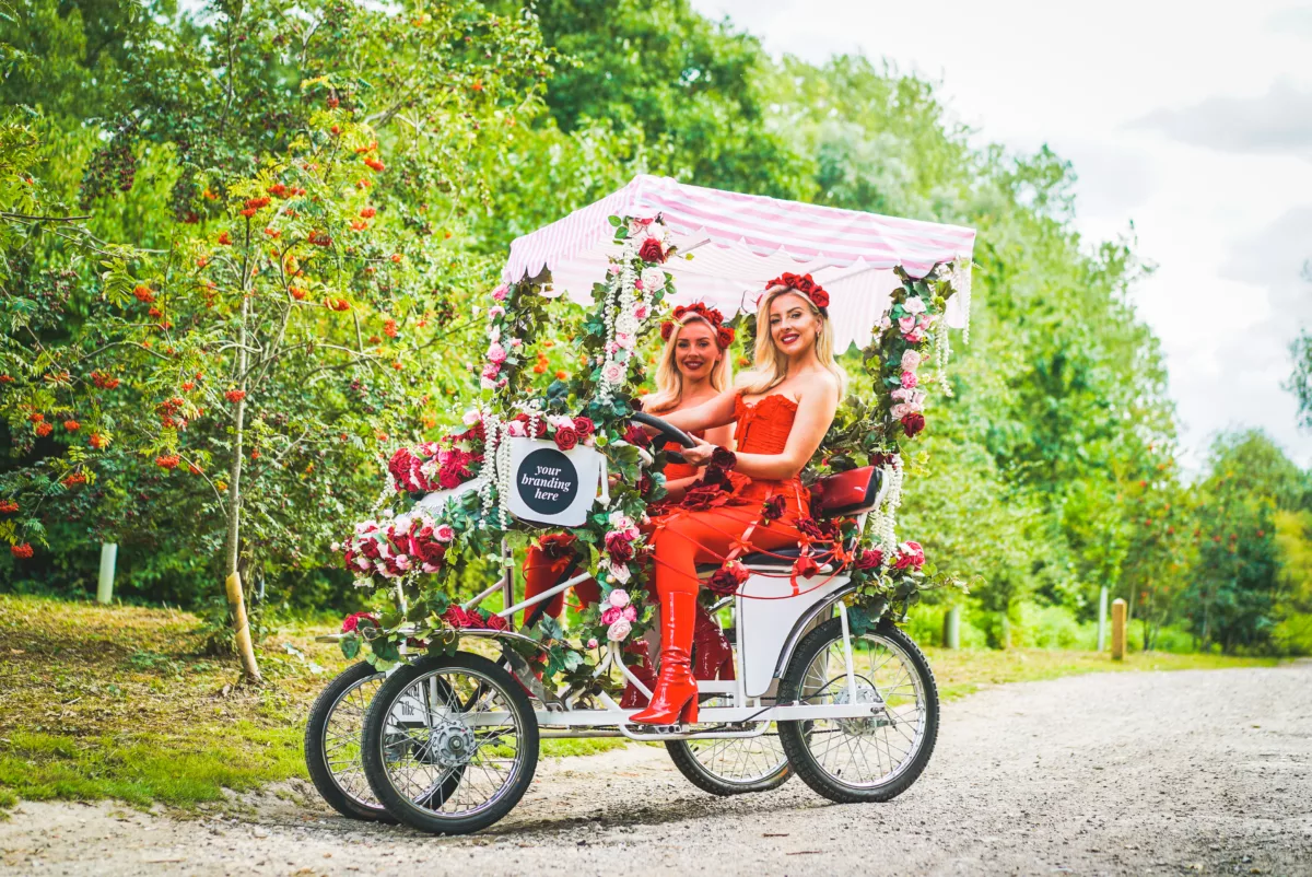 The Christmas Bike: Embrace the festive season with this adorned bike featuring Christmas garlands, poinsettias, and candy canes. Pedalled by either Christmas Elves or Christmas Living Flower Girls, it brings a magical holiday touch to your event.