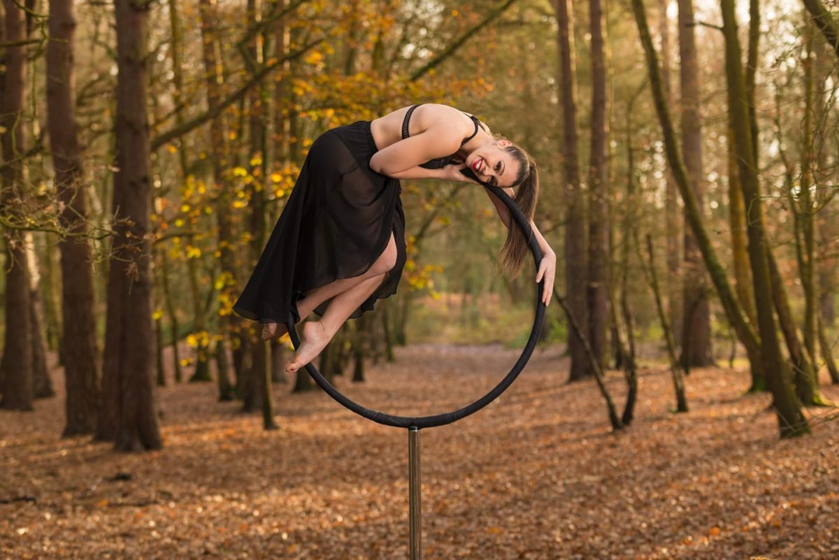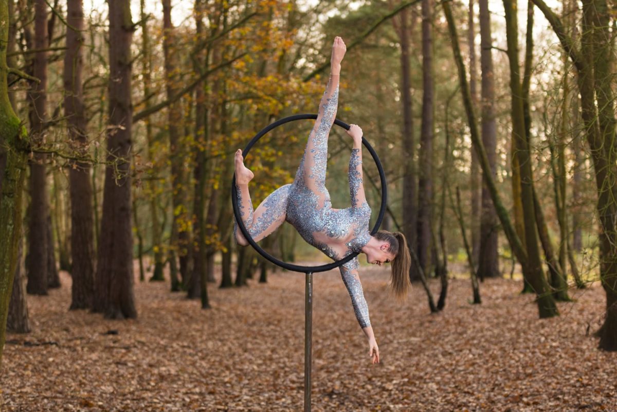 The free-standing aerial hoop is an ideal aerial act if you don’t have rigging available at your venue.