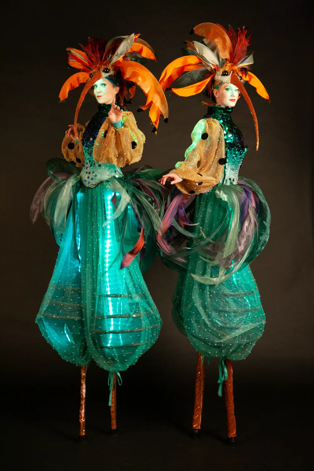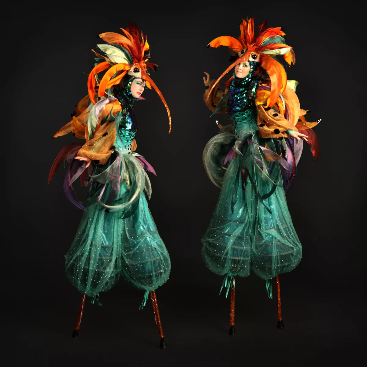 The Green Hummingbird Stilt Walkers stand as a testament to the joyous and festive spirit of carnival celebrations. With their arresting visuals, interactive puppetry, and adaptability, this act promises to leave a lasting impression on audiences of all ages. Book the Green Hummingbird Stilt Walkers to elevate your event and immerse your guests in a world of colour, creativity, and unparalleled entertainment.