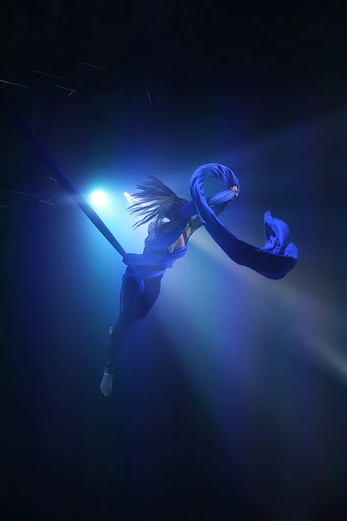 • From the grandeur of weddings and the celebratory atmosphere of Bar and Bat Mitzvahs to the vibrancy of summer gatherings, the excitement of carnivals, the spirit of Mardi Gras events, the enchantment of children’s parties, the allure of circus events, the prestige of award ceremonies, the glamour of gala events, and the impact of brand and product launches, the Rock Chick Silks Aerial Act seamlessly integrates into any setting.
