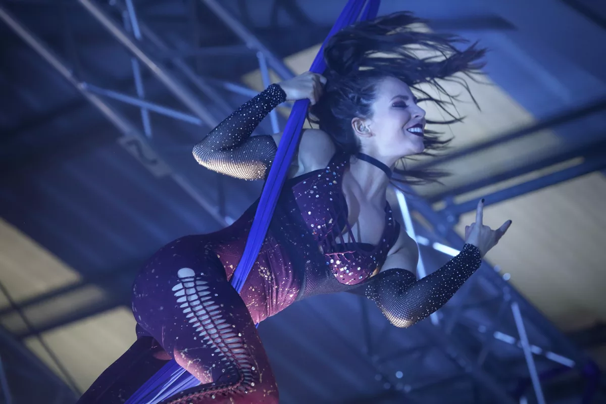 Join us for an electrifying experience featuring the Rock Chick Silks Aerial Act, one of the world’s finest live performances! This dynamic aerial artist brings an exhilarating combination of rock and acrobatics, suspended high above at breath taking heights. Their thrilling act blends grace and power, captivating audiences with a unique and unforgettable display.