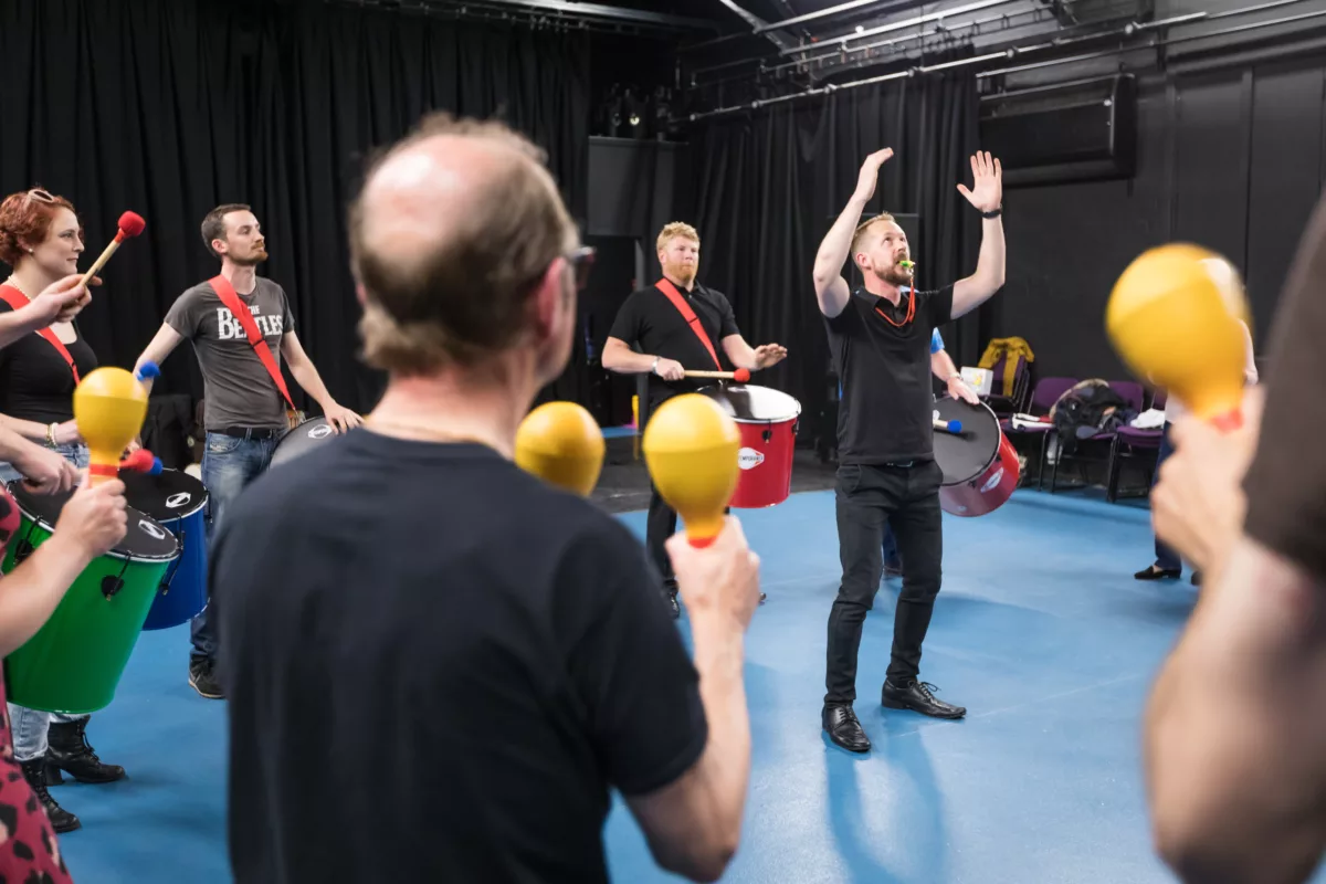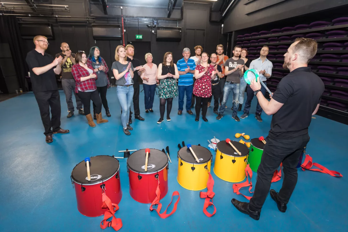 Throughout the session, the experienced instructors lead everyone through rhythmical exercises and challenges, ensuring they grasp the essence of Brazilian Samba. Subgroups assume ownership of various Latin percussion instruments, uniting as one to create the full, vibrant sound of a Brazilian Samba band. The workshop culminates in a loud, impressive, and high-energy final performance, creating a carnival atmosphere where everyone plays an essential role.